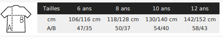 6 ans, 8 ans, 10 ans, 12 ans, XS, S, M, L, XL